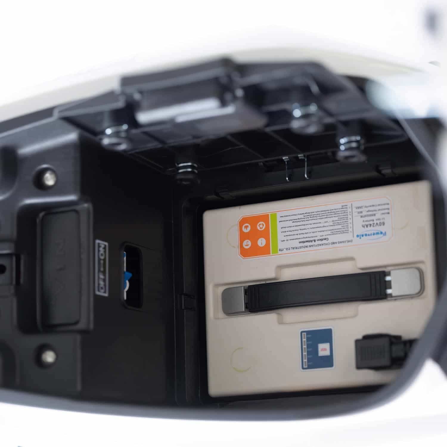 La batterie est amovible, ce qui permet de la charger facilement à la maison ou au bureau. Il suffit de retirer la batterie et de la brancher sur une prise standard, offrant ainsi une grande flexibilité pour les utilisateurs.
